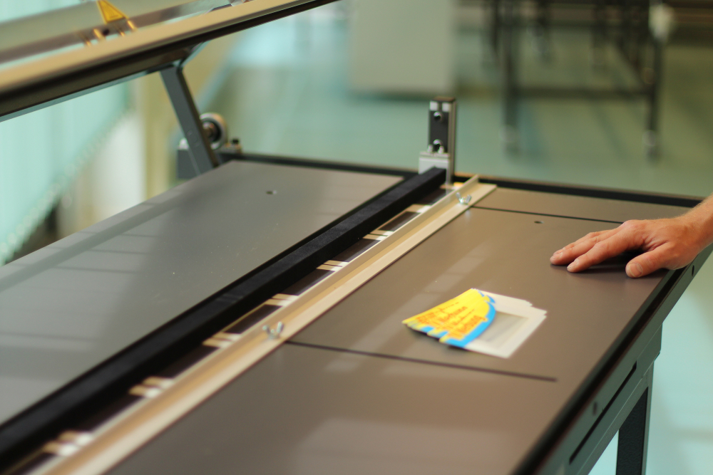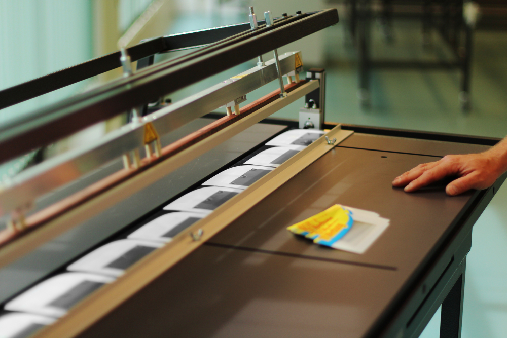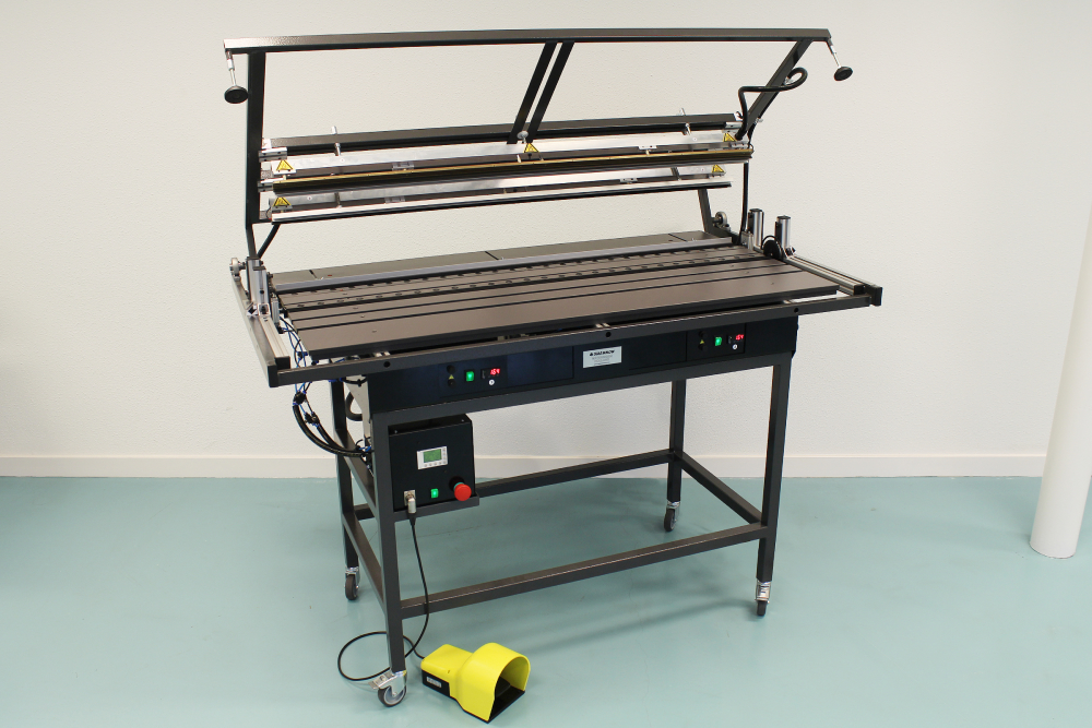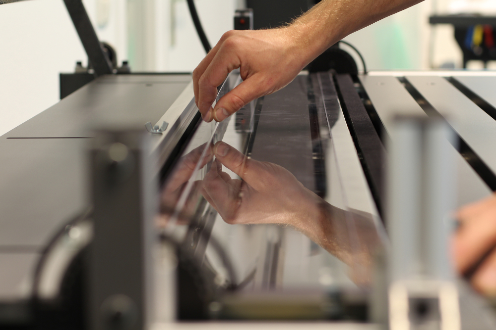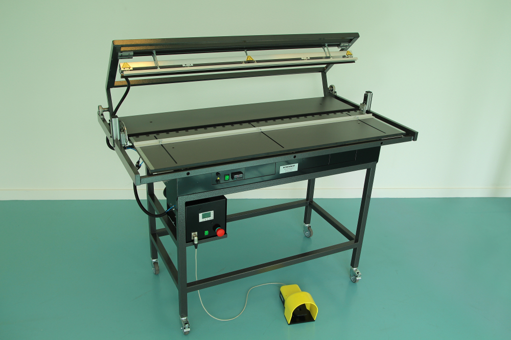 Máquina de dobrar automática para plásticos com baixas espessuras.