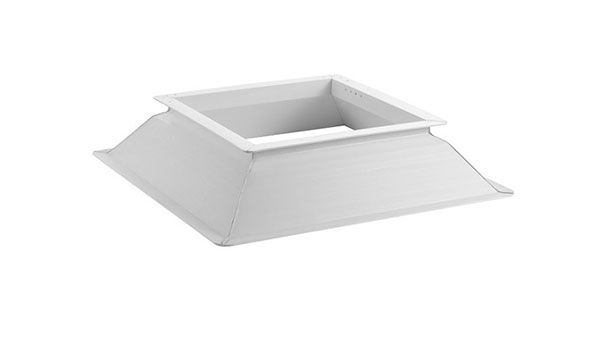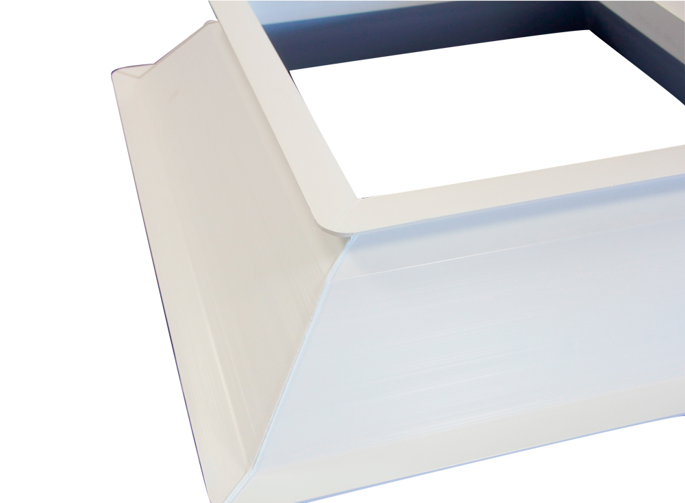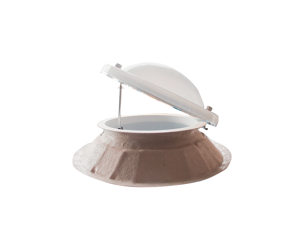 Base-rodapé em PVC (para clarabóias quadradas e retangulares) e base-rodapé em POLIÉSTER reforçado com fibra de vidro (para clarabóias circulares). Estas bases-rodapé permitem o isolamento lateral, a adaptação da cúpula à cobertura/telhado e uma maior resistência na instalação com tela asfáltica.