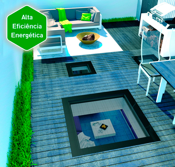 Clarabóia de alta eficiência energética com transmissão térmica de apenas 0,7 W/m2K.