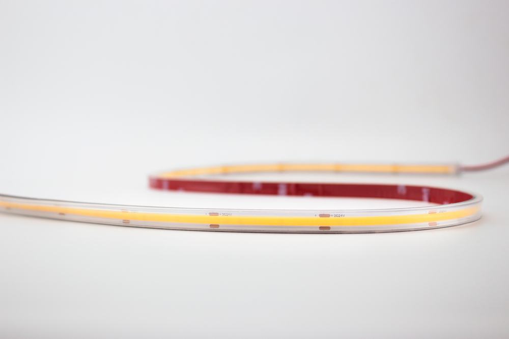 A fita LED COB (chip on board) é uma fita sem pontos de luz, com iluminação contínua e uniforme, ideal para usar em qualquer perfil LED.