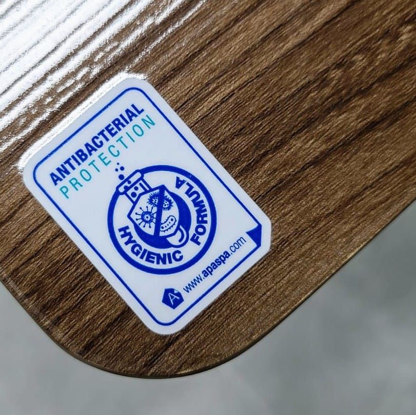 Película calandrada brilhante, desenvolvida para impedir a proliferação das bactérias.