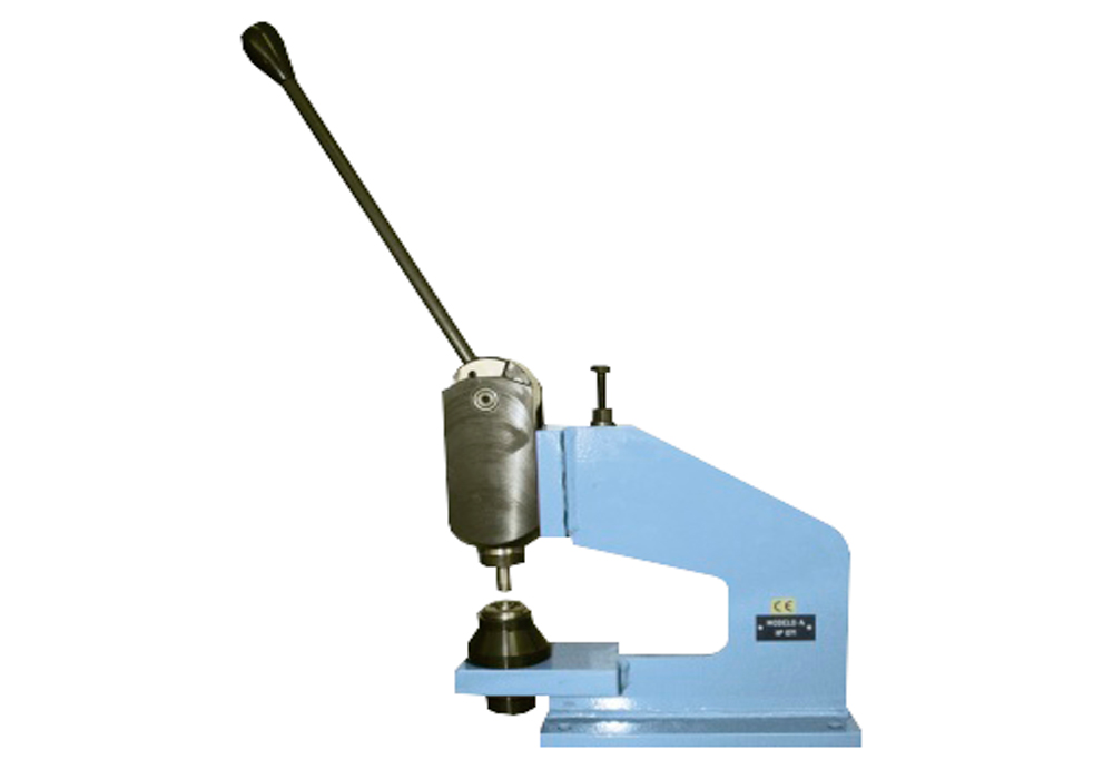 Máquina manual de aplicar ilhós. Inclui todo o equipamento necessário para a fixação de ilhós.