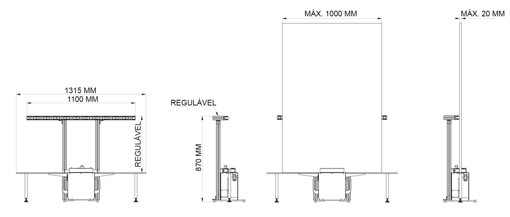 - Máquina + acessório: 1315 (C) x 870 (A) mm.