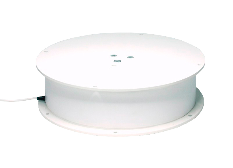 Motor giratório elétrico. Suporta peso até 100 kg. Diâmetro do prato 400 mm. 2.5 rpm. Interior.