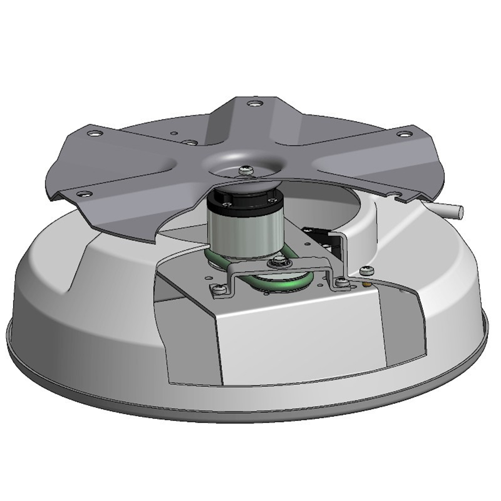 Motor giratório elétrico. Suporta peso até 30 kg. Diâmetro do prato 225 mm. 2 rpm. Interior.