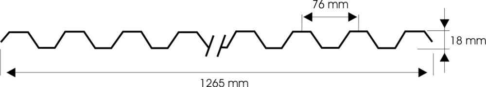 Chapa policarbonato ondulado GRECA com 0,8 mm de espessura e 1265 mm de largura.