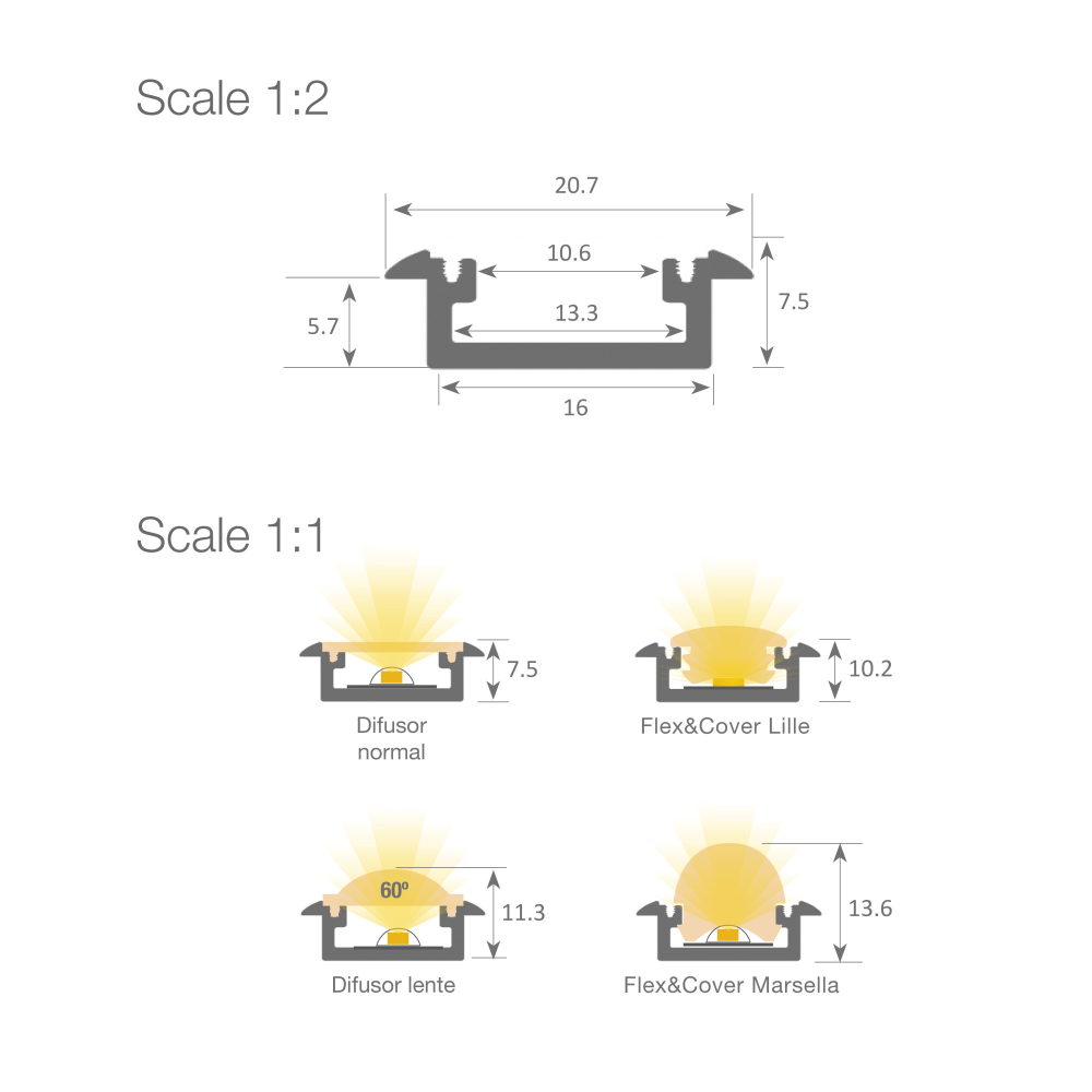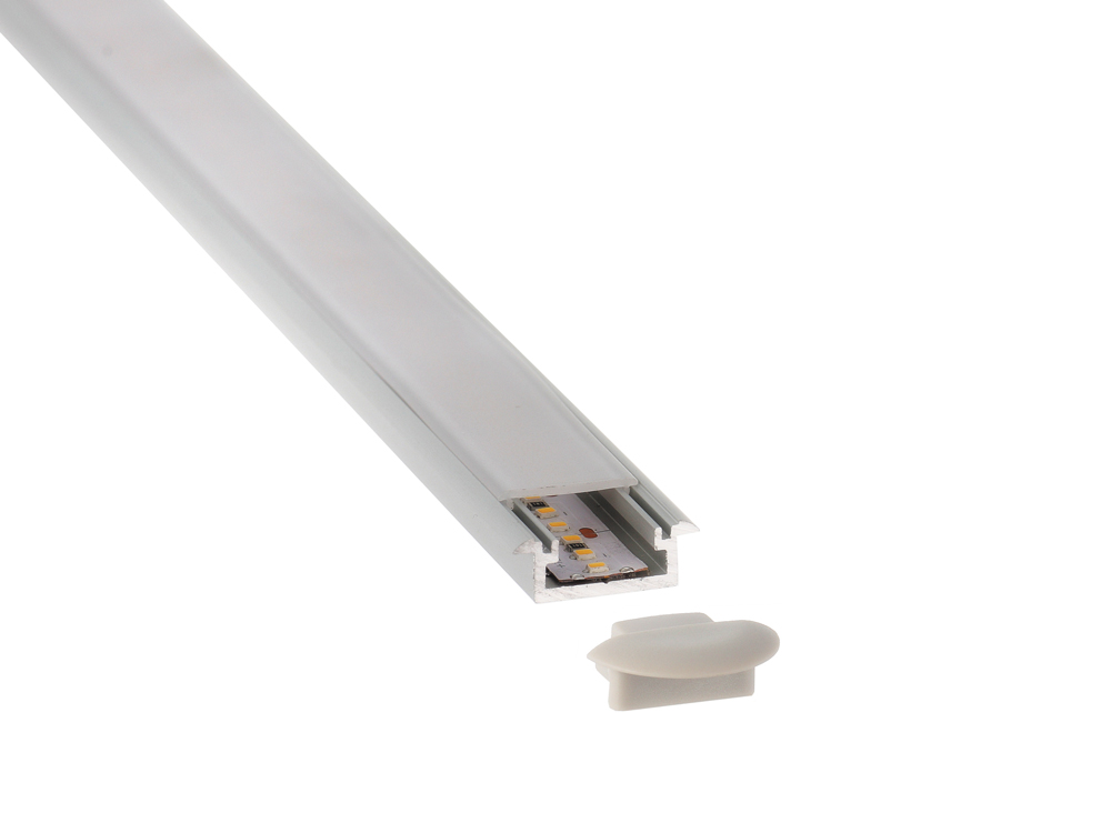 Perfil LED Frankfurt em alumínio anodizado prata.