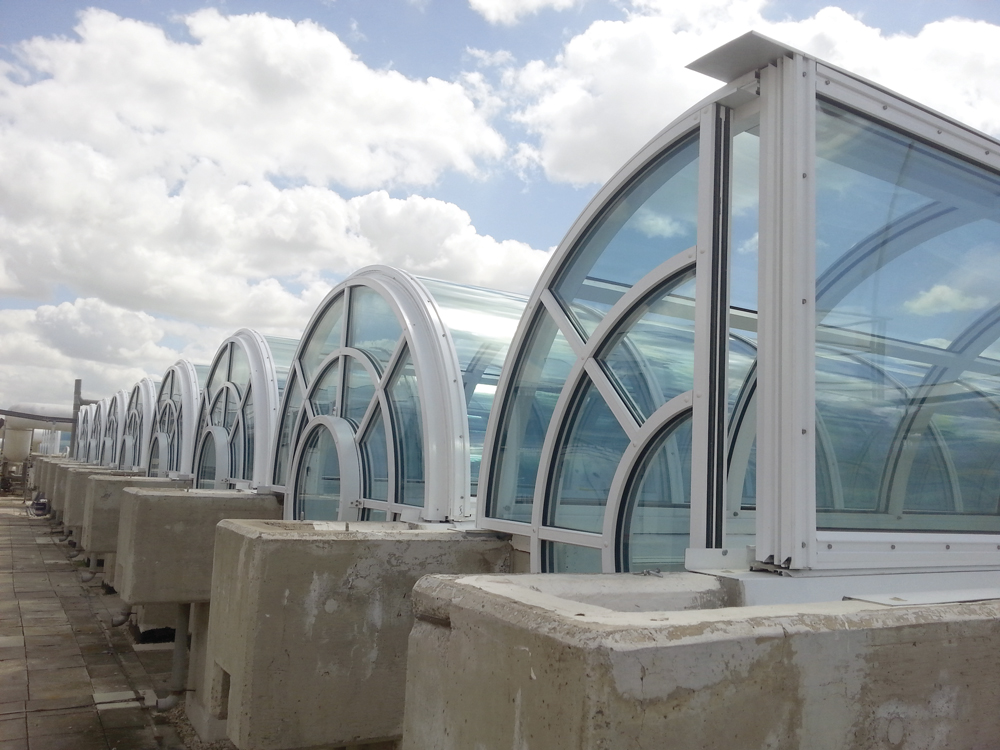 coberturas exteriores, clarabóias, coberturas e envidraçamentos. As