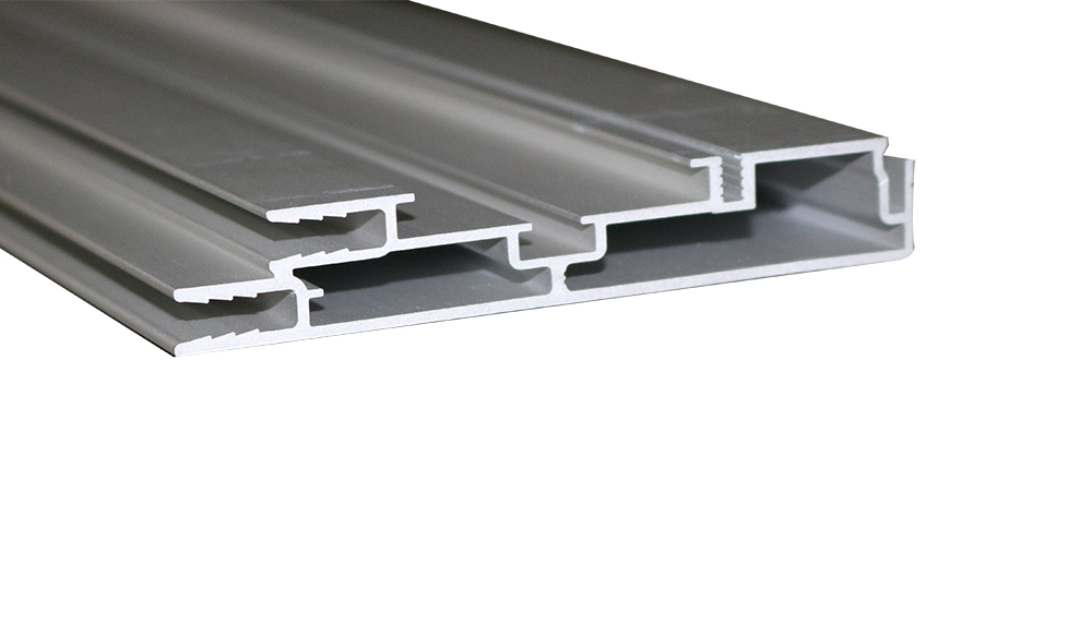 Perfil anodizado para produção de caixas com frentes em tecido com 100 mm de profundidade, uma face.