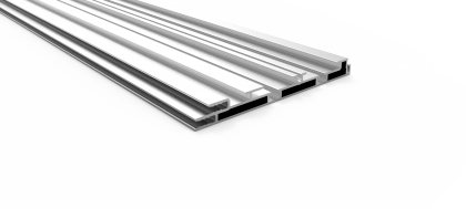 Perfil de alumínio em bruto para produzir caixas com frentes em tecido com 150 mm de profundidade, uma face.