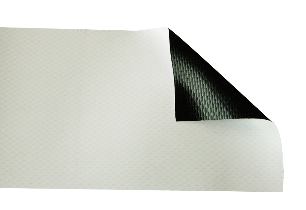 Tela BLOCKOUT semi-coated, com 440 gr/m2. Preta por trás e com acabamento acetinado